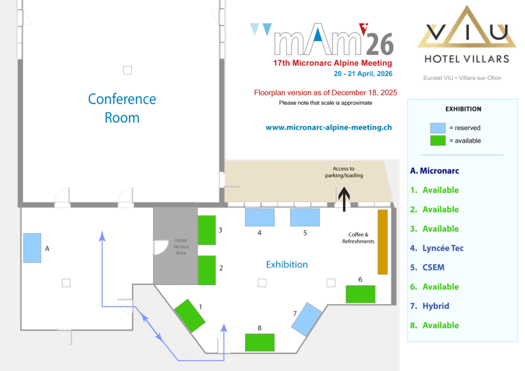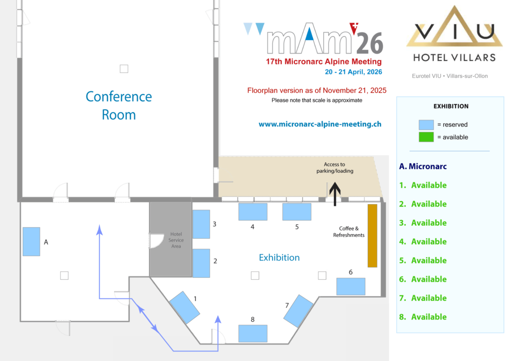 A limited table-top exhibition will run in parallel to the conference for companies and organisations that wish to promote at mAm 2026. The exhibition is located adjacent to the conference room and includes the main refreshment area.